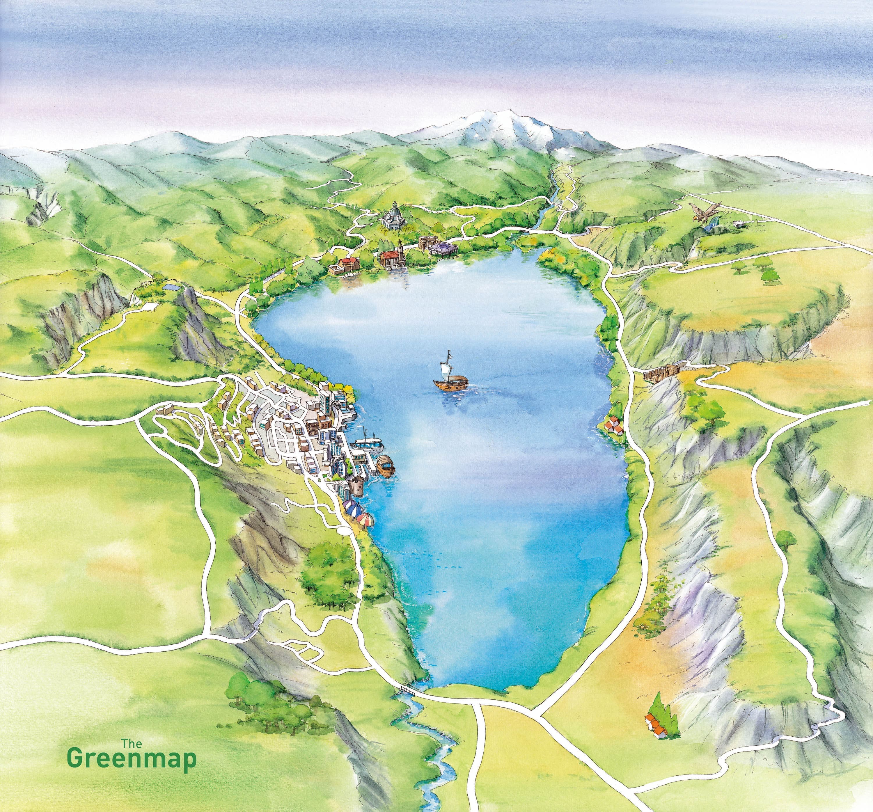 수채화 기법을 통해 지형과 특징을 표현했다.