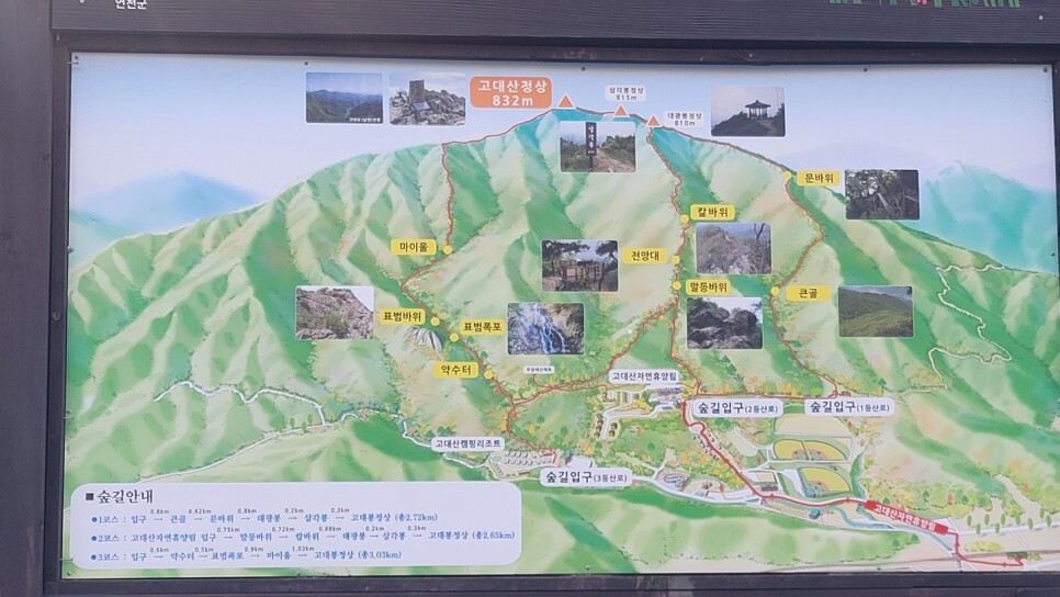 고대산 자연휴양림 등산 안내도