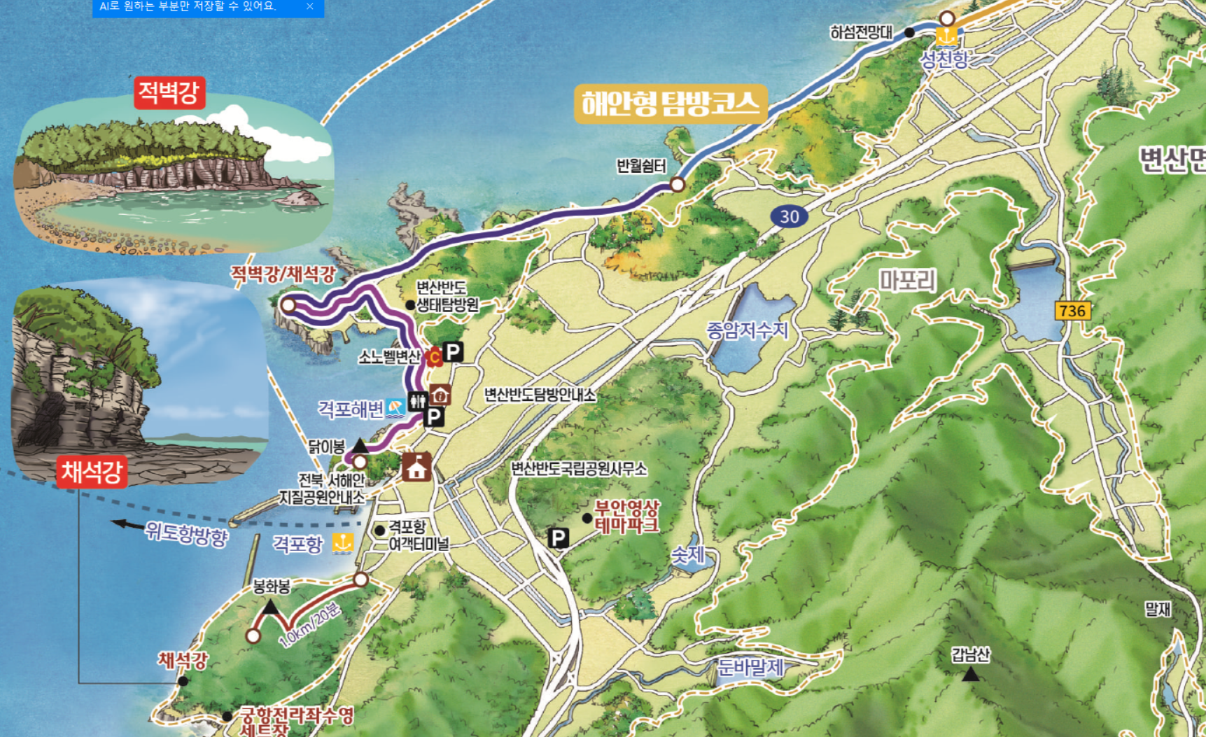 변산반도 관련 그림지도가 필요하시다면, "더그린맵"에서 맞춤 제작 가능합니다.
