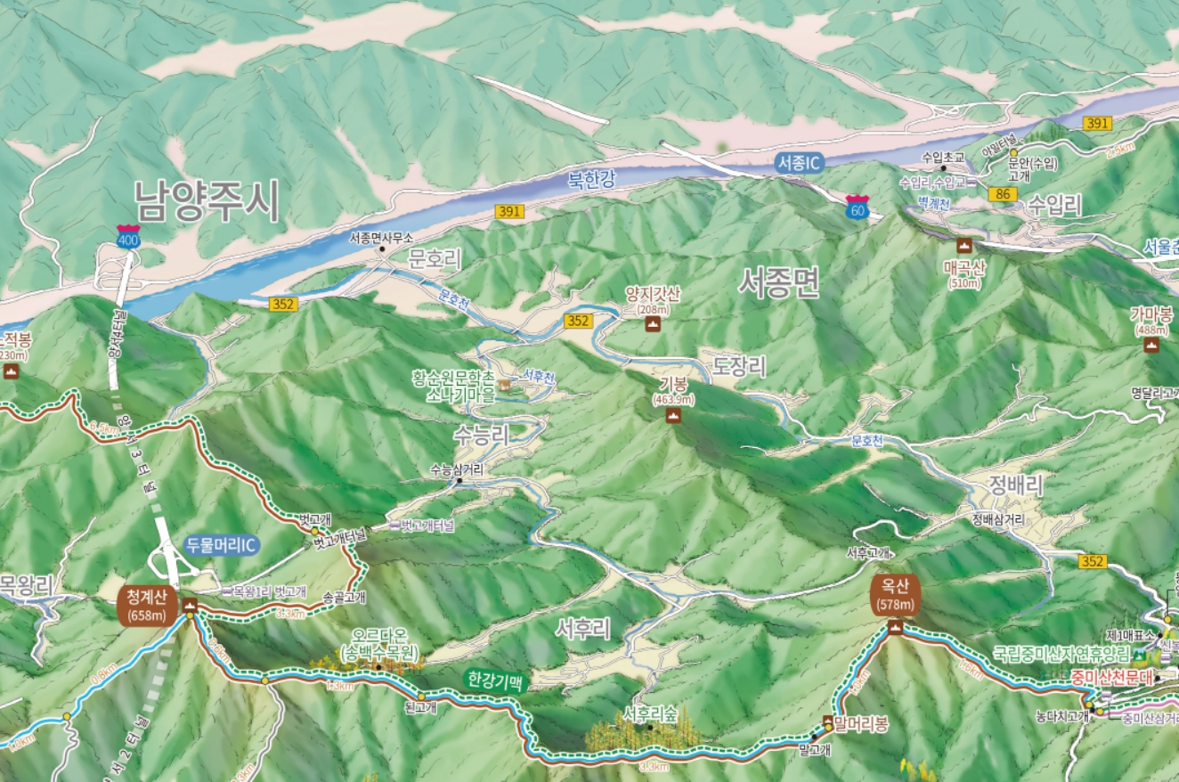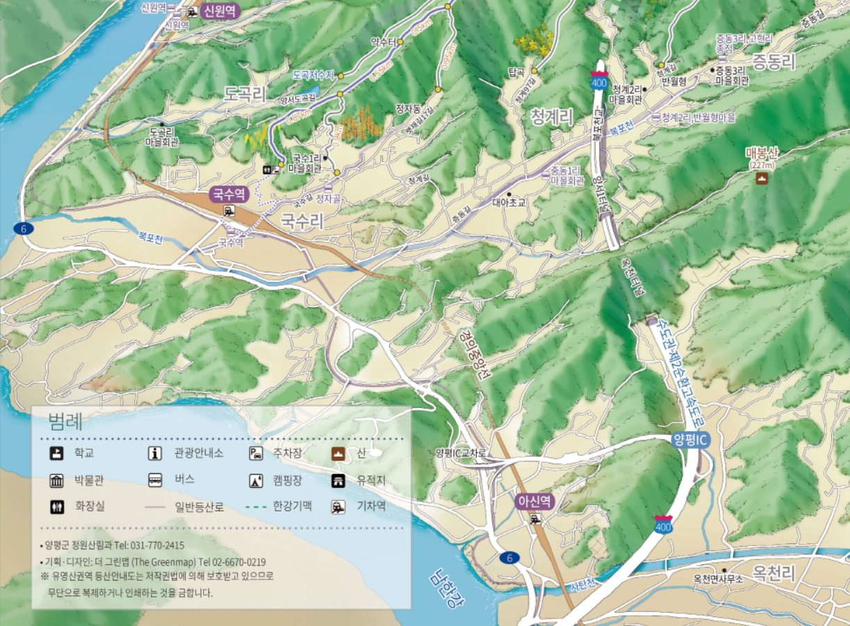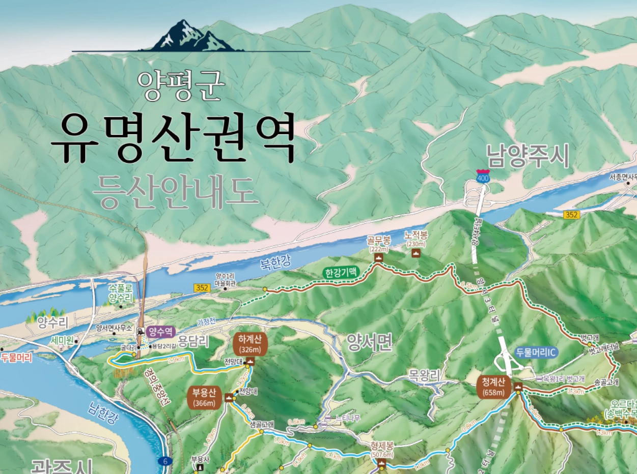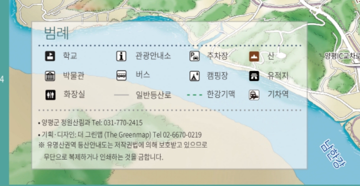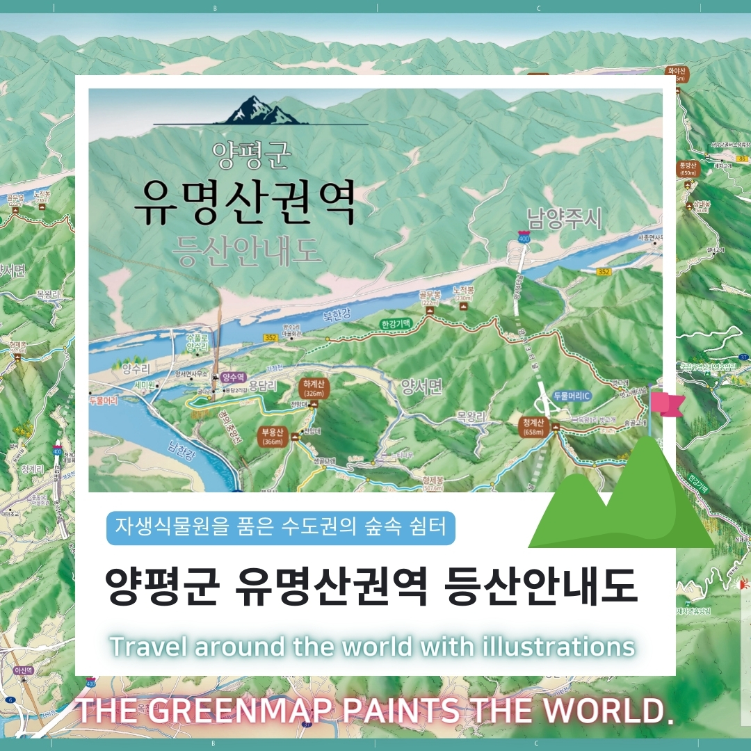 이번에 저희 더그린맵이 경기도 양평군의 유명산권역 등산안내도를 제작했습니다.