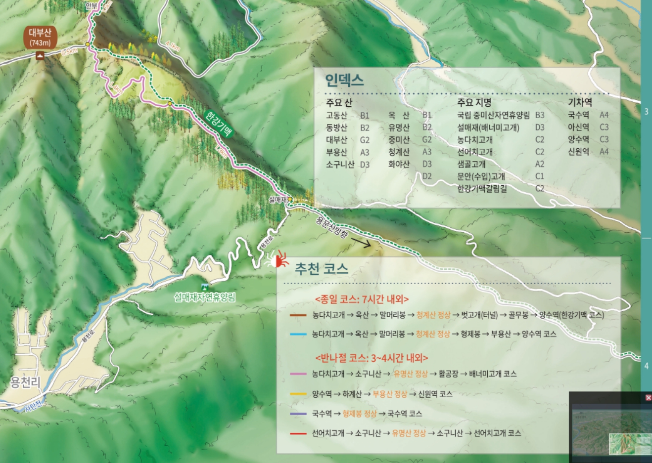 더 그린맵의 "유명산권역 등산안내도"