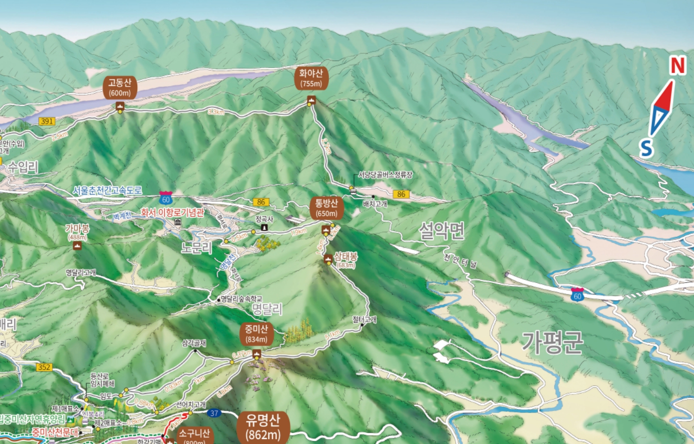 유명산권역 등산안내도 (전체)