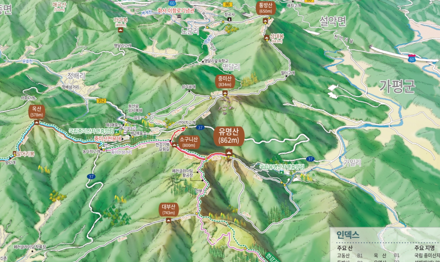 유명산권역 등산안내도 (전체)