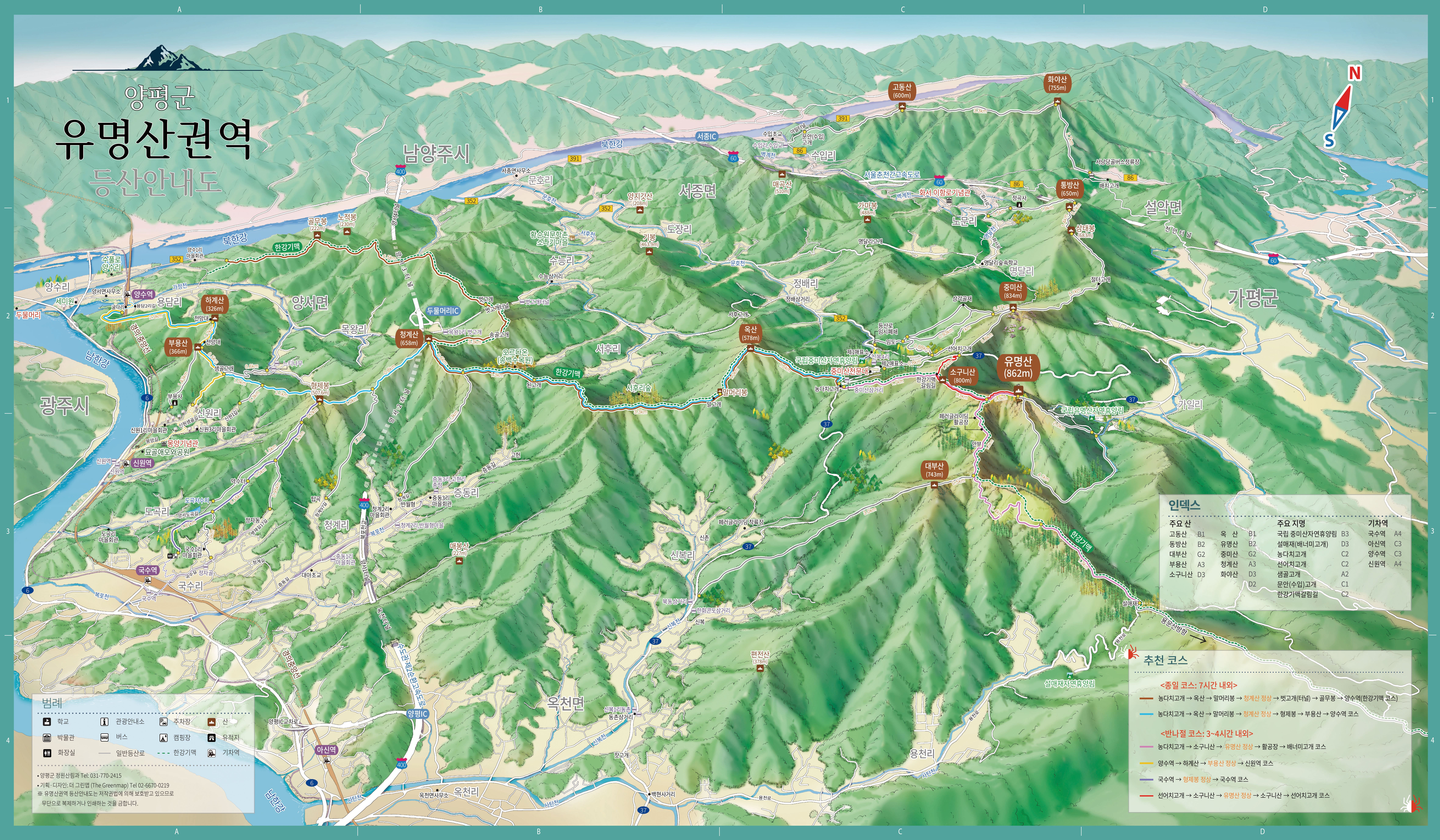 이번에 저희 더그린맵이 경기도 양평군의 유명산권역 등산안내도를 제작했습니다.