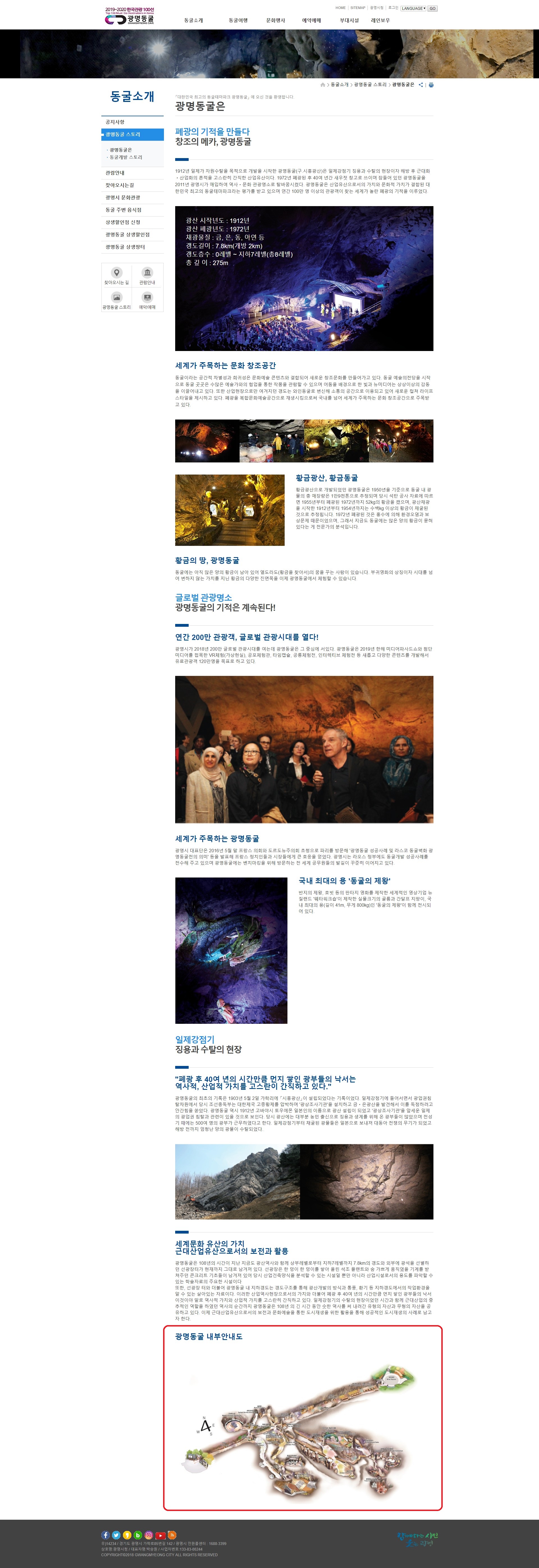 사이트명 : 2019~2020 한국관광100선 광명동굴 홈페이지