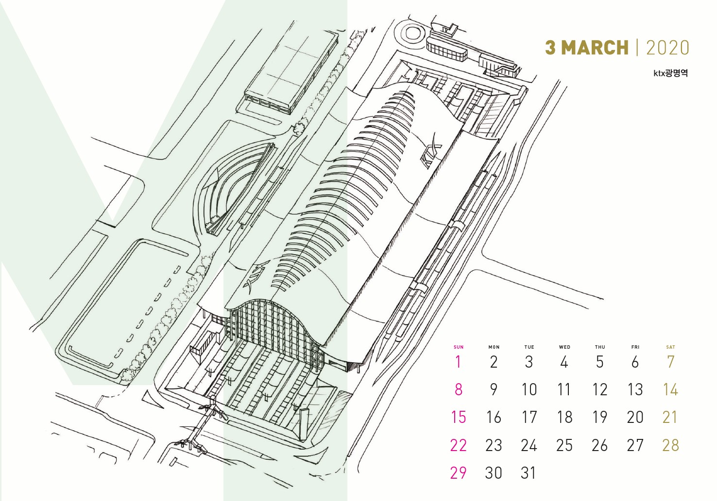 더그린맵 2020년 스케치 달력 3월 - KTX광명역 (숫자면)